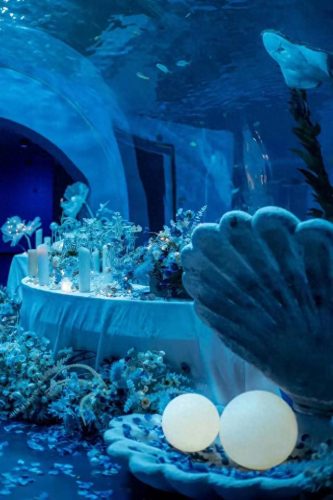 当你在这里享受美食的时候,旁边的海洋动物会在旁边围绕着你游来游去,它们仿佛是与你一起共进晚餐的饭友。