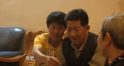 在得知高泽文爸爸、爷爷奶奶都牙口不好后,他就一直一边聊天,一边不断咬开、剥掉松子坚硬的外壳,乖巧地递到他们手上。