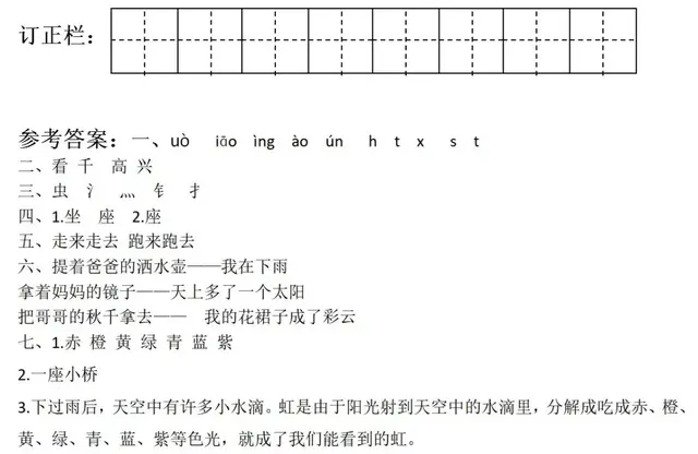 虹hóng(彩虹)(虹桥) 座zuò(座位)(入座)