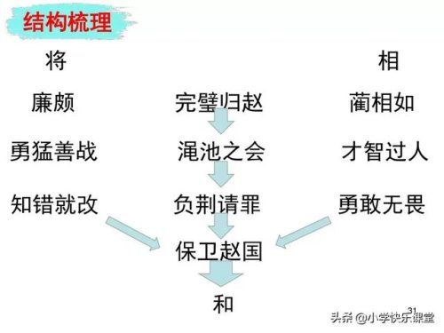 以秦赵两国的矛盾为背景,以蔺相如的活动为线索,通过对“完璧归赵”“渑池之会”“负荆请罪”三个小故事的记述,写出了将相之间由不和到和好的经过,赞扬了蔺相如勇敢机智、不畏强暴的斗争精神和以国家利益为重,顾大局、识大体的可贵品质及政治远见,也赞扬了廉颇勇于改过的精神。