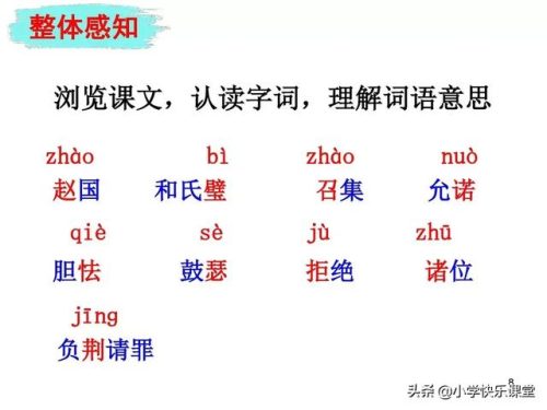 负荆请罪:现表示主动向对方承认错误,请求责罚。本课指廉颇脱下战袍,背上荆条,到蔺相如门上请罪。