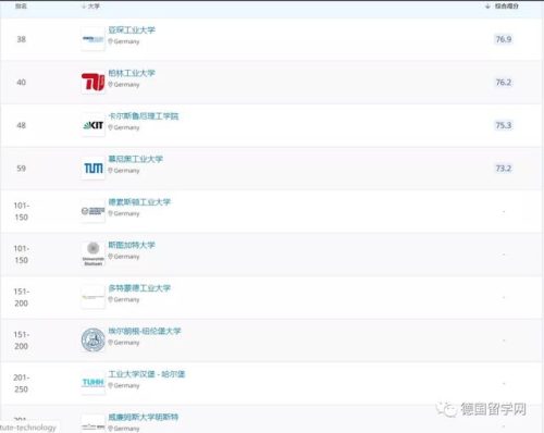 在工程与技术领域及其下面的7个细分学科中,德国排名世界前100的高校如下: