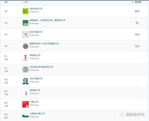 在社会科学与管理领域,排名世界前100的德国大学依次是柏林洪堡大学、曼海姆大学、柏林自由大学,具体排名如下: