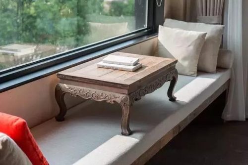 近百米的大堂宽敞却不单调,兼具茶吧、书吧、休憩区的功能,设计古色古香,情调韵味十足,晴日阳光洒进来,格外明亮温暖。