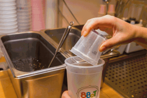没有8波的奶茶是莫得灵魂的!店员小姐姐加起料来,那可是一点也不手抖~