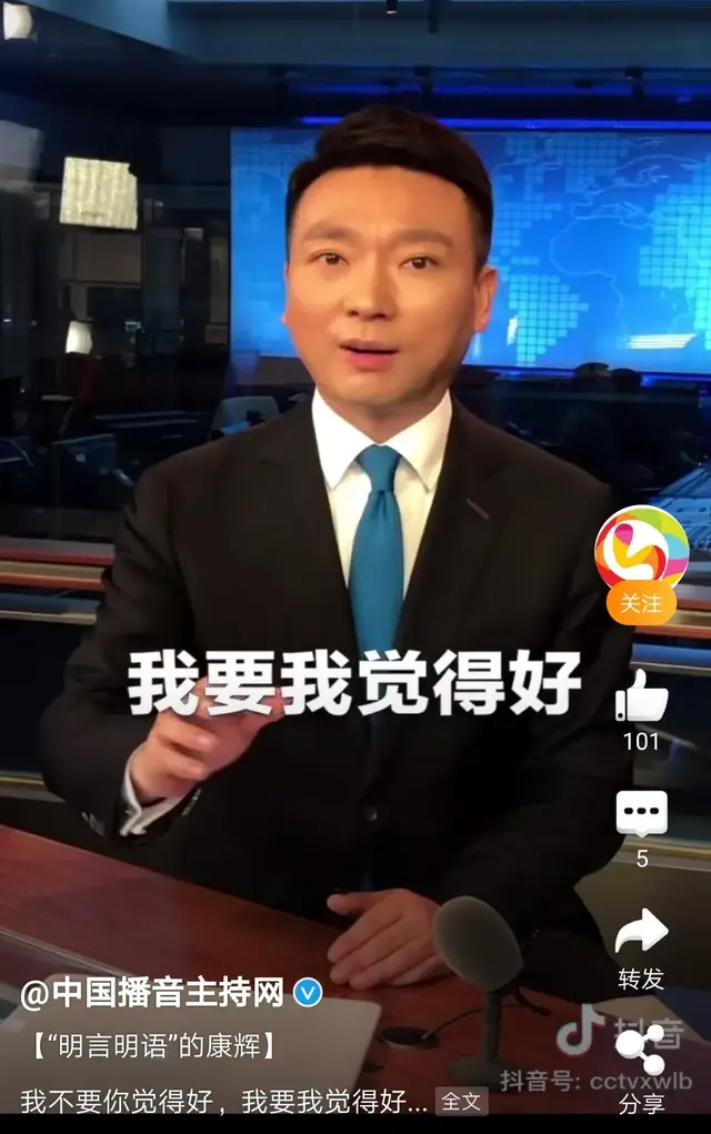 接着“明言明语”流行那会儿康辉还用此来评论美国一些政客:“美国一些人总是一副‘霸道总裁’的做派:我不要你觉得好,我要我觉得好……”