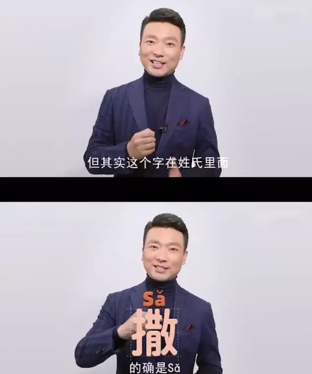康辉:其实这个字在姓氏中念撒(sǎ)。