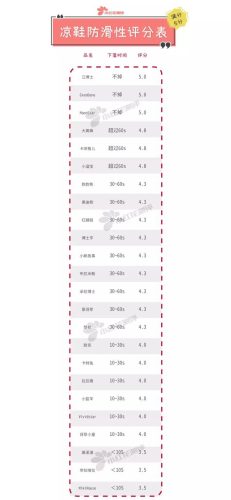 测试方法:准备一个与平面成60°角的斜面,让凉鞋从斜面的顶端滑下并计时,用时最久的凉鞋防滑性最好。