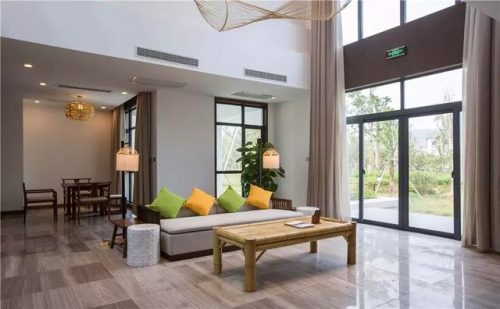 其中,多层客栈以田园风情为主。每间房都有宽敞的阳台和落地窗,或临田园或面群山。房间内饰则融入当地的竹元素,风格独特。