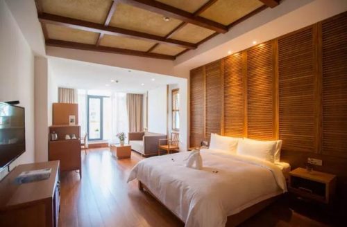 大年初一风情酒店每间客房配备了无敌大阳台,放眼望去,江南水乡之景一览无余!远处是高耸的青山,近处是酒店错落有致的小桥流水。此时,酒店、景亦融为一体、难舍难分,恍惚之间有一种置身尘世之外,独享恬静之感。