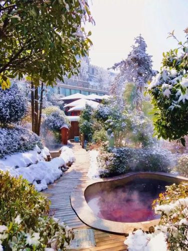 倘若遇上下雪天,一场酣畅淋漓的滑雪过后,一定要泡温泉!浸泡在温泉之中的皮肤温暖如春。再加上迎面便是白雪皑皑的山脉,挂着落雪的翠竹,神仙过的日子不过如此吧!