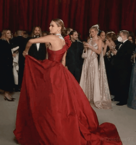 卡拉迪瓦伊的这条红裙既端庄又火辣,尤其是裙摆纷飞的时候,就像是红毯上一朵盛开的红玫瑰。