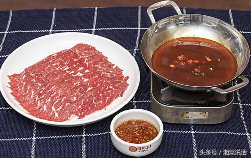 从选料、刷法到蘸料,多个方面的讲究,才能打造出一锅鲜香入骨的牛肉火锅。雪花牛肉选自牛的肩胛肉中最靠近头部的部位,整只牛只占1%非常稀有,因经常运动,肉质上佳。汤底就是浓浓的牛骨汤,里面放了黄豆豉、生抽、耗油、辣妹子、辣鲜露、姜、蒜、鲜香菇等调料,等到汤锅里的牛骨汤煮沸之后,放入雪花牛肉,上上下下涮个十秒钟,吃着就刚刚好,千万不要一直放在锅里煮,煮老了就不好吃了。也可以根据个人喜好蘸点辣椒酱吃,咬一口,细嫩多汁,入口即化,口感非常好。