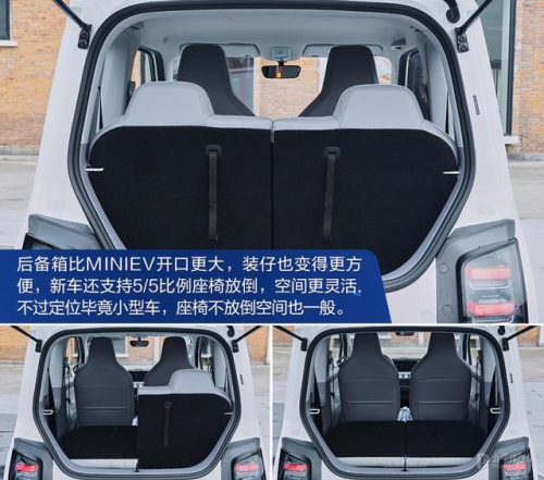 后备箱的开口虽然更大了的,但我感觉还是有点偏小,另外尾门的设计几乎为90度,而新车仅有一米六几的车高,所以尾门的高度还是偏低的,一米八以上的大个子稍不留神就会碰头,如果有办法可以做到角度的调节,相信会对身高各异的消费者更加友好。
