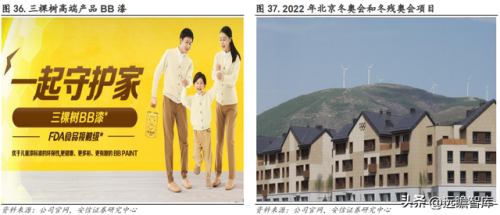 此外,公司创新性研发出高端墙面漆—BB漆,该产品已通过美国食品药品监督管理局制定的食品接触标准测试;在国内家装领域,研发出国潮风涂料新品“十万擦”高性能耐擦洗墙面漆;在工业涂料领域,公司针对工业厂房、钢结构等防护需求,提供环保、高性能、易施工的防护解决方案,并成为北京2022年冬奥会和冬残奥会官方涂料独家供应商,涂刷国家跳台滑雪中心“雪如意”等10多个冬奥工程,签约武大靖、谷爱凌、国家短道速滑队,赋能三棵树品牌高端化升级。
