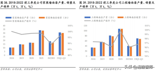渠道端,公司坚持零售高端转型升级,由三、四线城市向一、二线城市进驻,建立家居卖场艺术涂料体验店、家居卖场体验店,推出美丽乡村综合服务和“马上住”服务,助力零售市场份额提升;在工程业务领域,逐步优化工程端经销商渠道建设,拓展小B端应用场景,完善城投城建、央国企等新渠道布局,叠加“六位一体”配套服务和下游各领域疫情防控优化后的建设提速,工程涂料市场份额和营收增速有望提升。