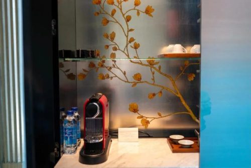从一楼的铜雕区就能感受到杭州柏悦低调奢华的气质,此处设计灵感来自清代商人胡雪岩在杭州的故居。