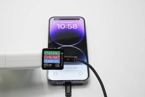 MOMAX 5000mAh mini 磁吸无线充对两部 iPhone 进行有线充电和无线充时,此时无线充 Type-C 输出端功率为 13.1W。
