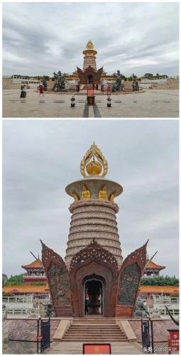 通天阁高59.88米,是目前国内最高的佛阁,供奉着弥勒菩萨真身(天冠弥勒);佛像高39.88米,也是目前国内最大的室内锻铜佛像。