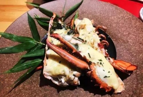 这又是一家日料,各色日式菜式都有涉猎。环境布置得十分用心。进门一个巨大的红蟹,让人立刻食欲大开。中间一颗充满日式禅意的黄叶树,让整个氛围更加安宁有格调。