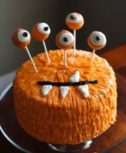 这是一款南瓜眼蛋糕,南瓜的元素契合了万圣节的气氛,大大的眼珠说不上吓人,反而还有几分萌意,是一款很应景的节日蛋糕。