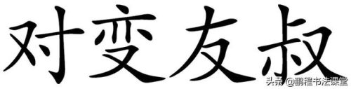 右:当“又”部在右侧使用时笔画未发生变化,但形态略微改变,为避让左侧字部,整体稍微收紧些,横画略微变短且向右上角度有所增大;撇画书写收紧,并没有伸展太长,超出横画起笔即可。整体来说撇捺的关系为“撇高捺低”,且撇捺相交位置位于又部的偏下(2/3)处。