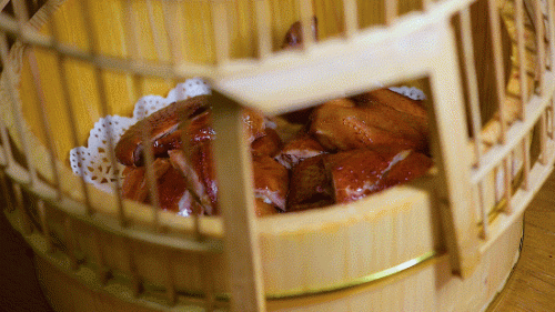 烤鸡胡桃里的硬菜,造型上也是用心的一番,鸟笼的样式,烤鸡摆放在笼中,香气逼人。