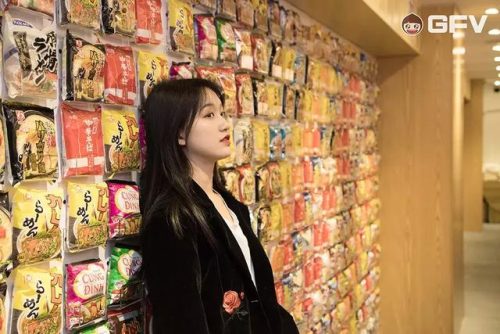 店里除了天花板,所有的墙都整整齐齐排满了各式各样的泡面,汇集不同国籍的100+款泡面,32种配菜,我已经迷失在这面墙,哪一款都想来一包…