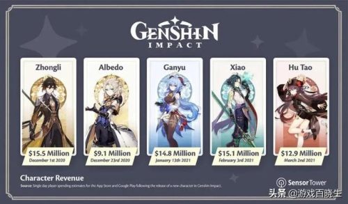 除此之外,还有五款游戏在去年至今表现得也十分亮眼,相继完成了10亿美元的营收目标。其中,国产游戏《原神》自发行以来仅仅花了6个月时间就在全球App Store和Google Play收入超10亿美元,不得不令人惊叹。