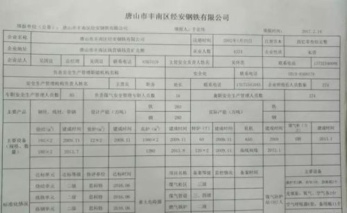 唐山燕山钢铁有限公司现有炼铁厂、炼钢厂、轧钢厂、烧结厂、球团厂、白灰厂、制氧厂、动力厂八个主体生产厂。设有办公室、安全部、企管部、机动部、生产部、技术部、质检部等职能部室。公司现有员工7000人,公司成立以总经理为主任的安全生产委员会,设专职安全生产管理机构—安全部,负责全公司的安全管理工作,主要负责人和安全管理人员共计158人,参加了安全资格培训,考试合格,并取得河北省安全生产监督管理局和唐山市安全生产监督管理局颁发的安全资格证书。