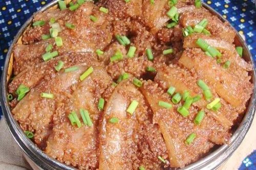 粉蒸肉是荆门的一道传统家常菜。这道菜以猪肉为主要食材,经过腌制后,加入炒制的米粉和其他调料拌匀,再上笼蒸熟而成。其肉质酥烂,味道鲜美,非常受当地人和外地游客的欢迎。