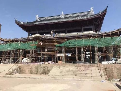 “目前万花楼还处在古建装修阶段,主体结构早就完成,北帝殿、万花楼、东西连廊的屋面盖瓦及墙体砌筑已经基本完成,下一步将会进行进行地面方砖铺设和油漆工施工等内部古建装饰。”玉林地产集团现场工程管理人员陈志刚介绍说。