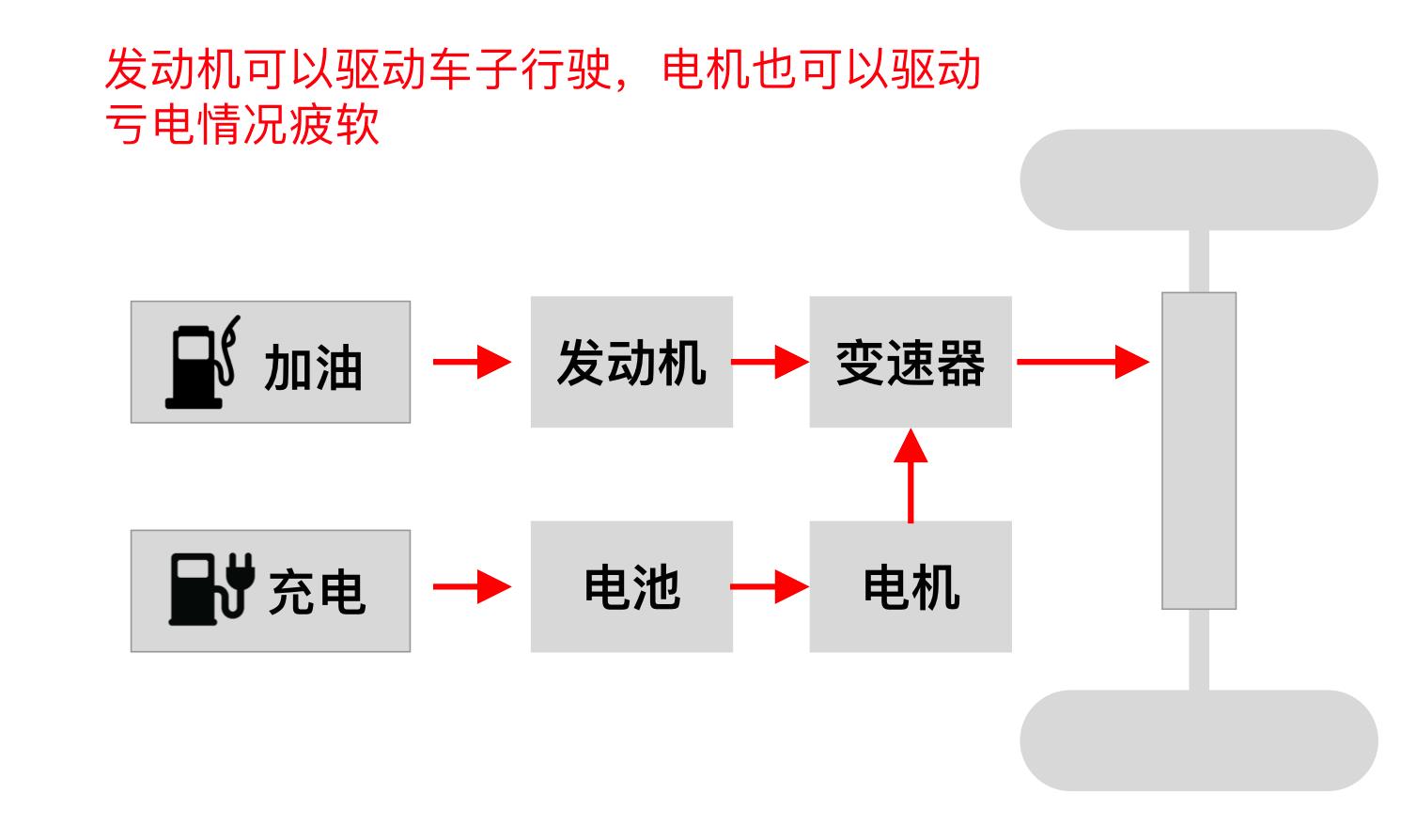 了解了相关概念,我们来谈一下市面上最常见的非纯电动汽车下的插电混合动力汽车