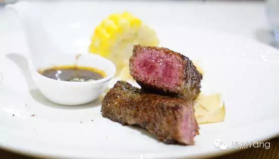 安格斯牛扒,肉选得好。铁板烧的好处,就是可以直接与铁板师傅当面沟通自己想要的生熟度,这样很适合我这种对吃很高要求的人士。