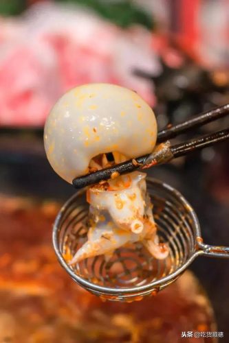 嫌芝士太过甜腻?那就来试试爽口的小清新虾滑吧!软绵弹牙的虾滑在锅底的浸泡下,略带辛辣,这时虾肉中的薄荷,为食客带来自然的味道,起到去腻的作用。