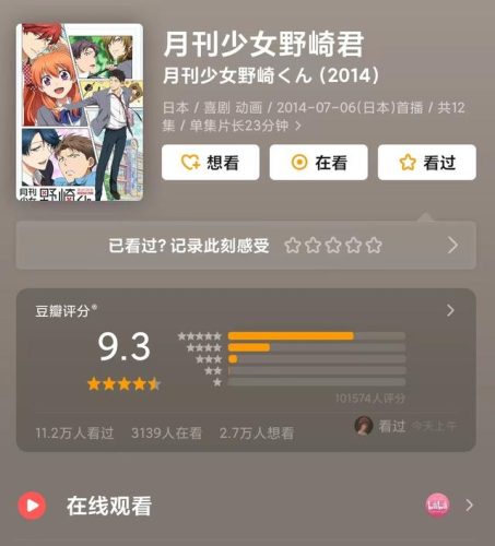 搞笑恋爱番。美术部的千代向野崎君告白后,得到了对方的亲笔签名,她才发现,自己喜欢的人竟然是漫画作家,而她因为告白而被当成了粉丝。其他配角也很出色。