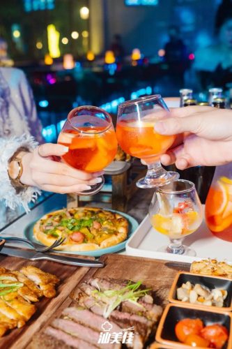 粉粉嫩嫩的水果酒,各式各样的水果加入特调的鸡尾酒,入口微甜,果香清新。一整壶都被我们姐妹几个承包了。