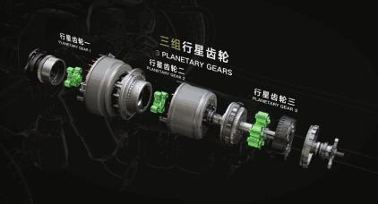 行星齿轮组,安装在汽车的自动变速箱里,某些新能源汽车驱动系统的齿轮箱里,位置看下图。它块头不大,但工作的效率比较高,是实现变速变扭的关键部件,特别是在新能源汽车里的应用更明显。