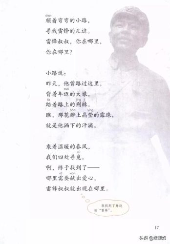 ◇顺着弯弯的小路,踏着路上的荆棘,雷锋叔叔……