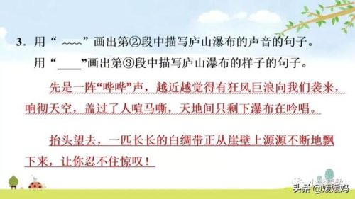 3.她的头发(乌黑)油亮,好像黑色的瀑布一样泻下来。