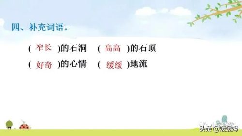 一个“迎”字,点明作者是逆溪流而上。“时而……时而……”运用排比句式,说明了溪流蜿蜒曲折,由于溪流的宽窄不一,才形成流水速度的缓急不同,作者巧妙地运用“宽、窄;缓、急”两对反义词准确地表达溪流的形和声。由于溪流缓急不一,听到的流水声也就各不相同,犹如在“时时变换调子”。这句话烘托了作者当时的游兴有多浓,对涓涓溪流发出如此赞叹!第一句话说明了双龙洞周围的地势环境,使读者有身临其境之感。第二句话则点明了双龙洞的准确位置,同时也为作者开始参观双龙洞起了过渡作用。