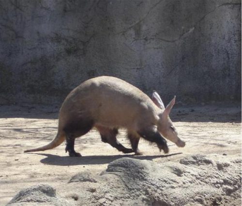 刚出生的土豚嘴巴与猪类似,耳朵像骡子,皮肤呈粉红色,上面遍布皱纹,可以说惊人地丑陋,媲美哈利波特里边的精灵多比。有人说,长大后长毛了会不会好点?然并卵,还是丑萌丑萌的。别看丑,他的耳朵和鼻子可都是有重要用途的,顺风耳可以贴近地面听声音判断白蚁的位置,鼻子用来拱白蚁的穴。