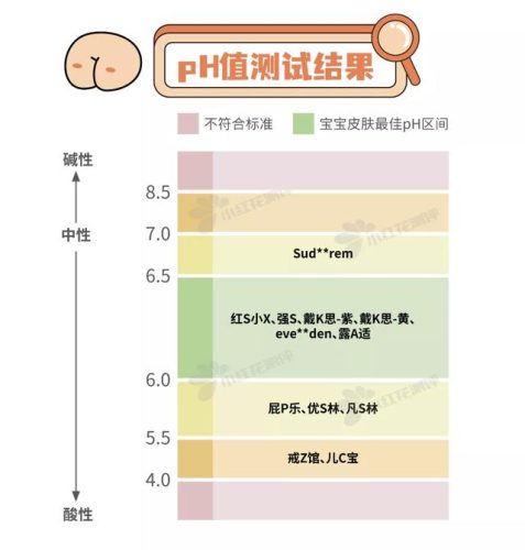 考虑到宝宝的皮肤pH值会在0-18个月时从6.5下降到6.0,然后再下降并稳定在5.5。因此花爸认为pH值在5.5-7.0的护臀膏都是比较温和的,月龄小的宝宝可以考虑选择pH值在6.0-6.5的护臀膏,与皮肤pH值更相近。