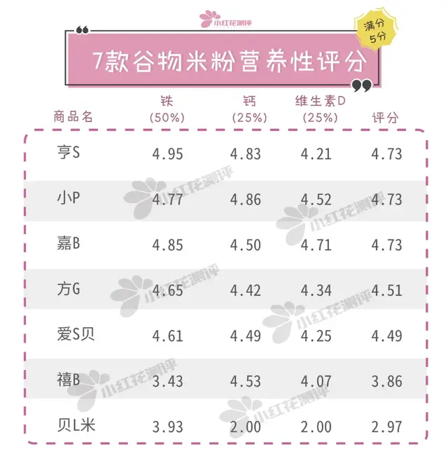 所以,参照国标要求,7款谷物米粉的营养性评分如下: