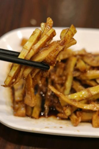 在卤汁紧紧的包裹下,笋条更加诱人。搭配主食一起吃,马上就能干掉一整碗~