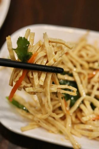 “云丝”两字颇见刀功,手起刀落间,豆腐干被切得细长匀称,混着胡萝卜丝,增加了层次的同时,也丰富了味蕾的不同需求~