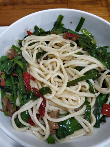 我要的韭菜拌面,味道还行,面劲道、菜多、味浓。