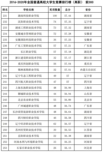 2-4 2016-2020年全国一般高职院校大学生竞赛排行榜