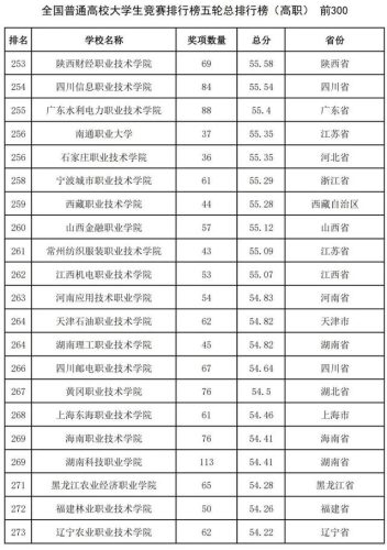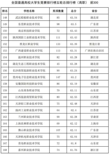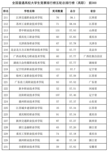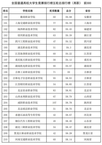 2-1 全国普通高校大学生竞赛排行榜五轮总排行榜(高职)