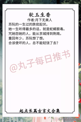 1.《软玉生香》 作者:月下无美人(貌美聪明女主vs毒舌自恋男主,女主重生,朝堂权谋, 一环接一环,揭开重重迷雾)